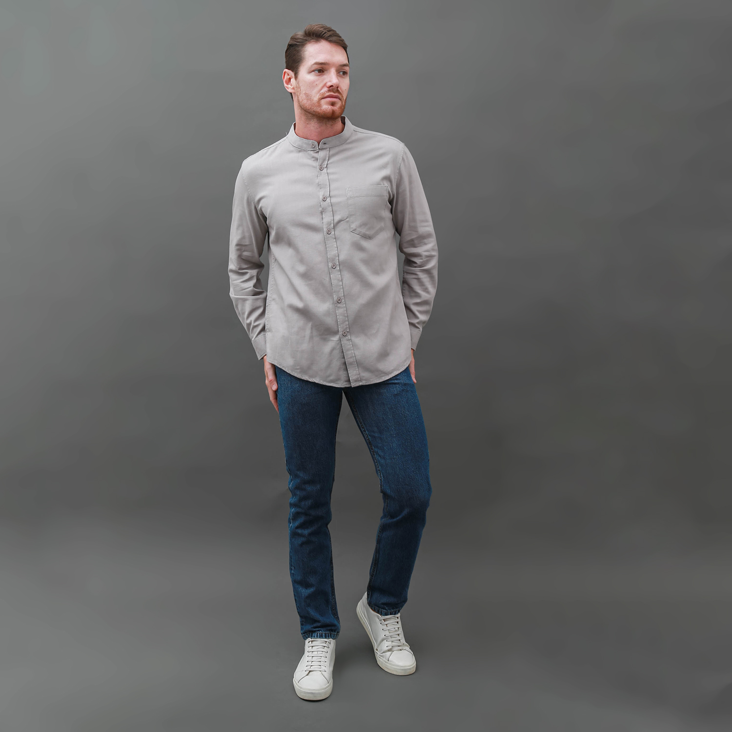 Bahan : 100% COTTON ; Warna : LIGHT GREY ; Fitting : REGULAR ; Tipe Kain : RIGID (Tidak Melar)