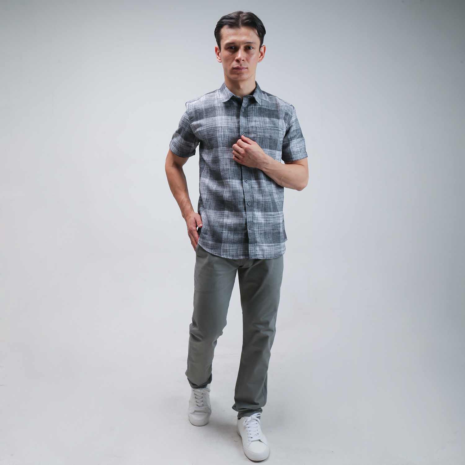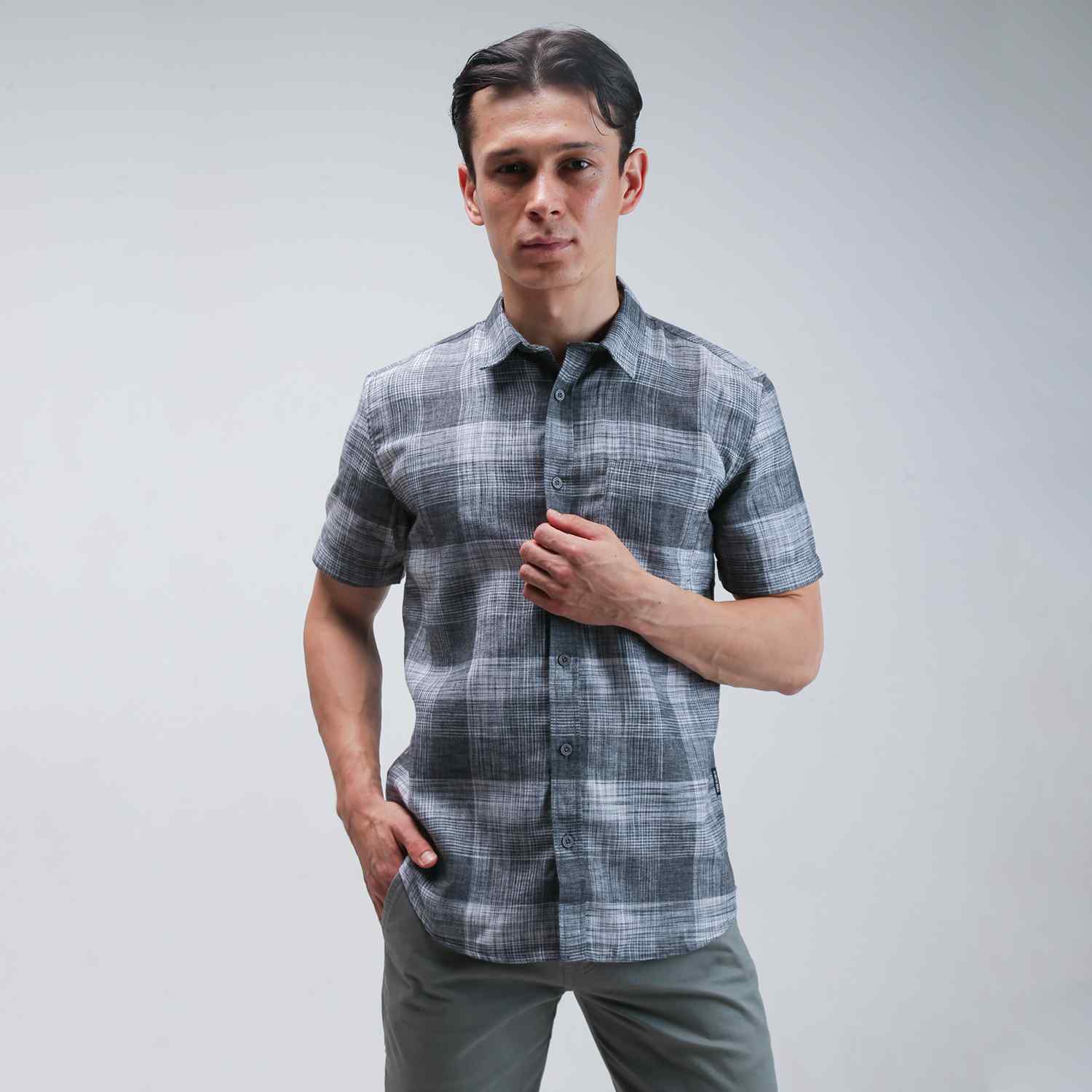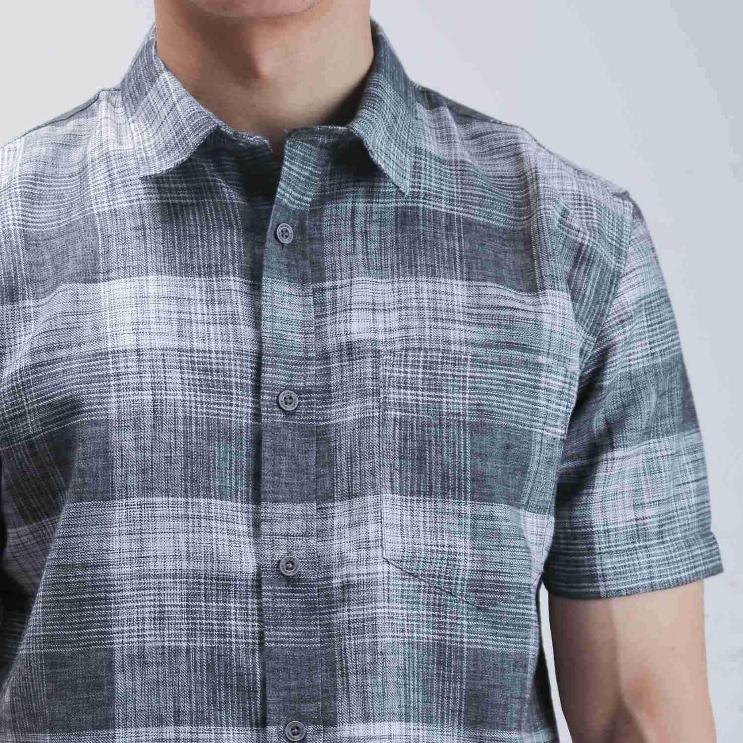 KEMEJA PRIA LENGAN PENDEK MOTIF KOTAK REGULAR FIT ; Bahan : 100% COTTON ; Warna : GREY ; Fitting : REGULAR ; Tipe Kain : RIGID