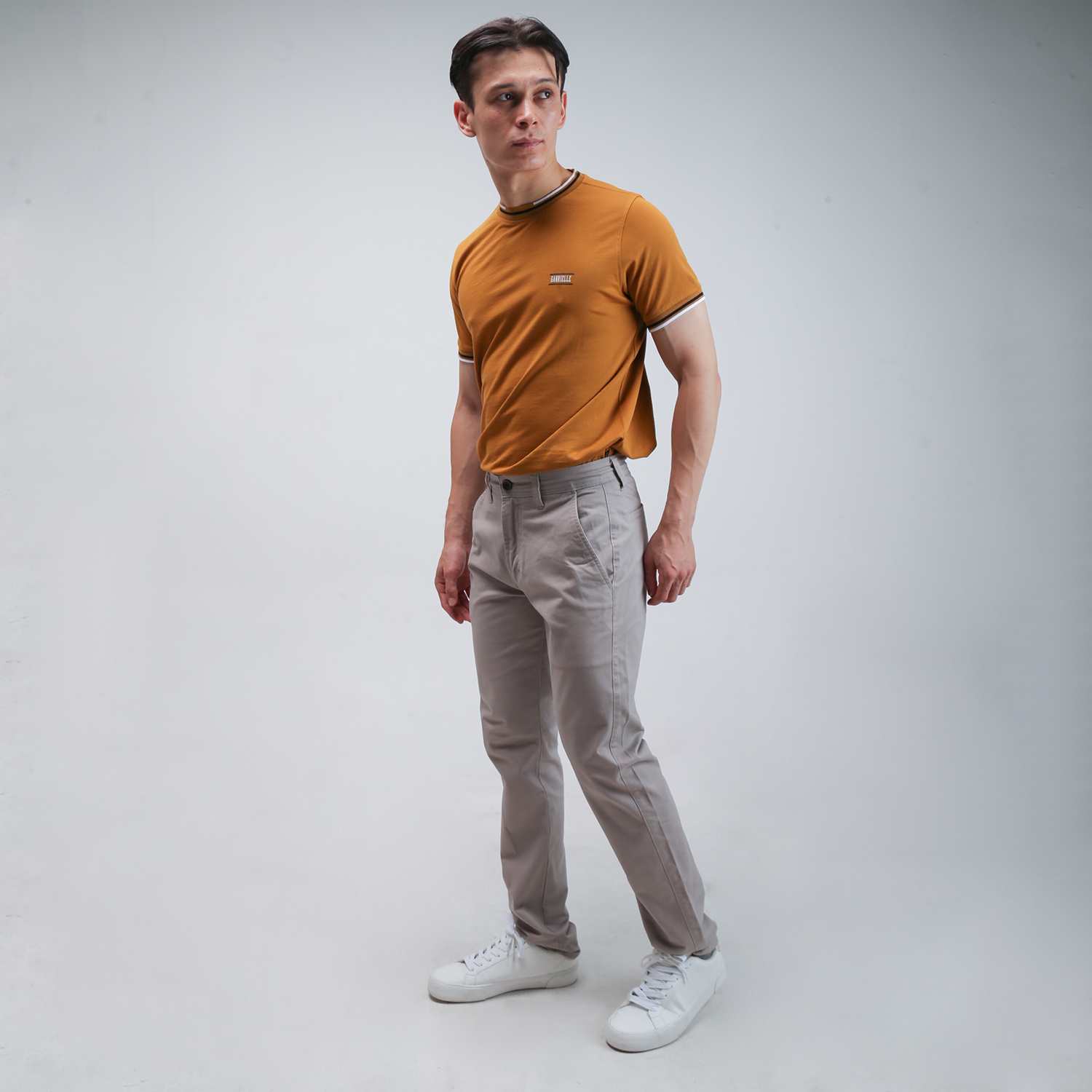 Bahan : 98% COTTON 2% ELASTANE ; Warna : BEIGE GREY ; Fitting : SLIM ; Tipe Kain : STRETCH (Melar)