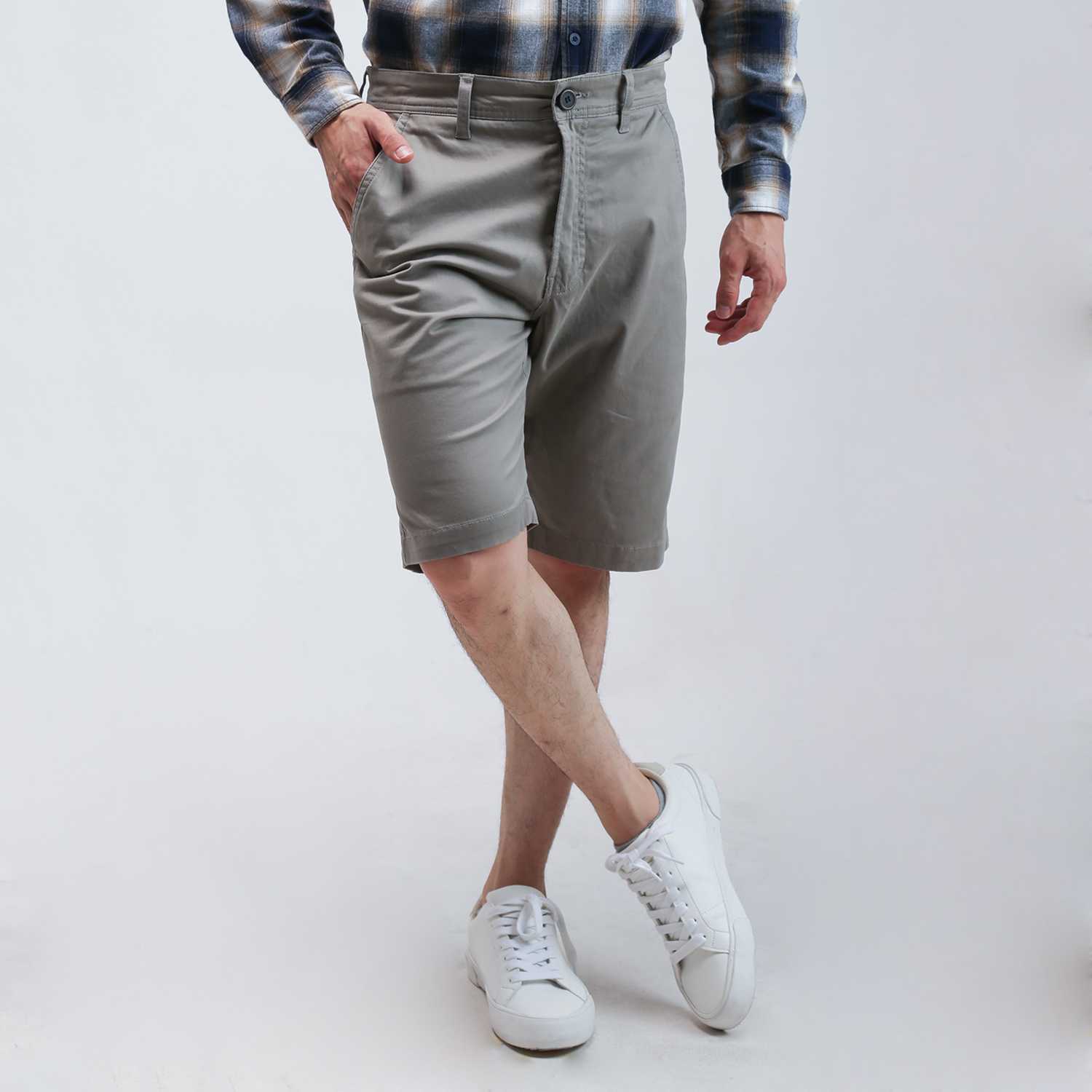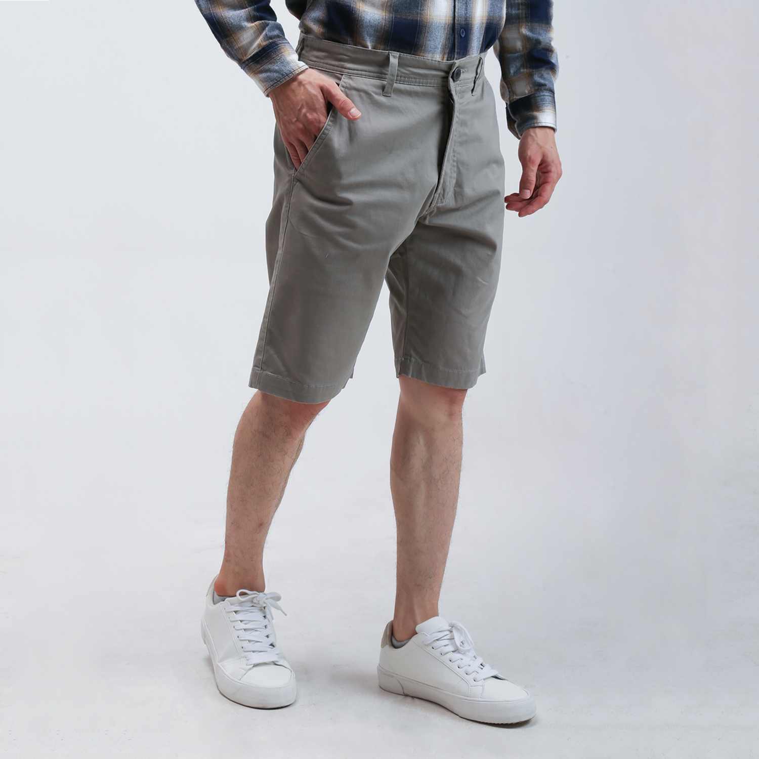 CELANA PENDEK CHINOS REGULAR FIT ; Bahan : 98% Cotton 2% Elastane ; Warna : SILVER GREY ; Fitting : Regular Fit ; Tipe Kain : STRETCH (Melar)