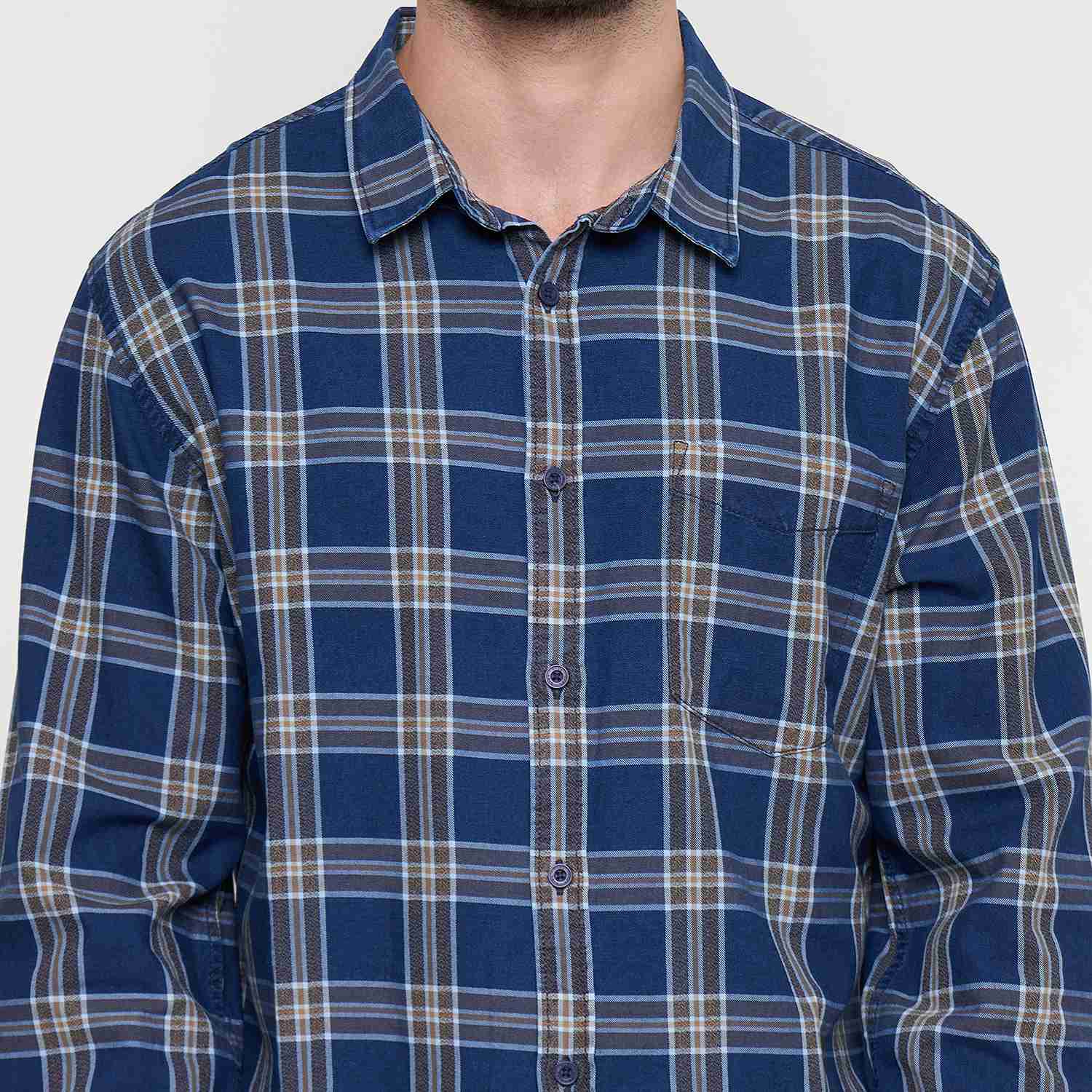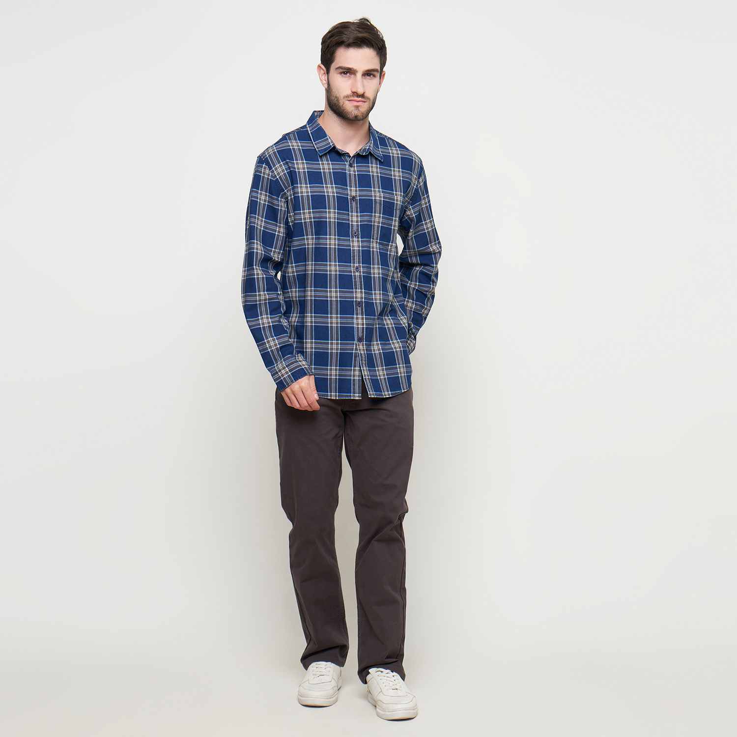 KEMEJA PRIA LENGAN PANJANG REGULAR FIT MOTIF KOTAK Bahan : 100% Cotton ; Warna : NAVY BLUE ; Fitting : REGULAR